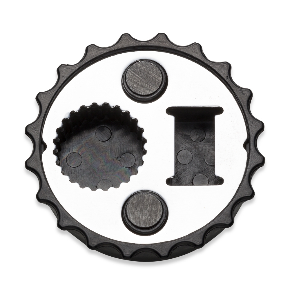 Abridor formato tampa de garrafa com imã para geladeira, contém dois tipos de abridores de garrafa. PRODUTO EXCLUSIVO PARA PERSONALIZAÇÃO EM ETIQUETA RESINADA.